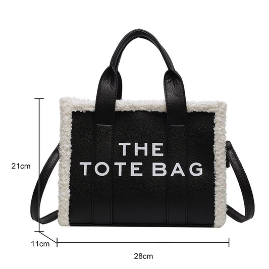 Tote Bag: Fashionable and Versatile Tote Bag with Soft Lamb Wool Stitching