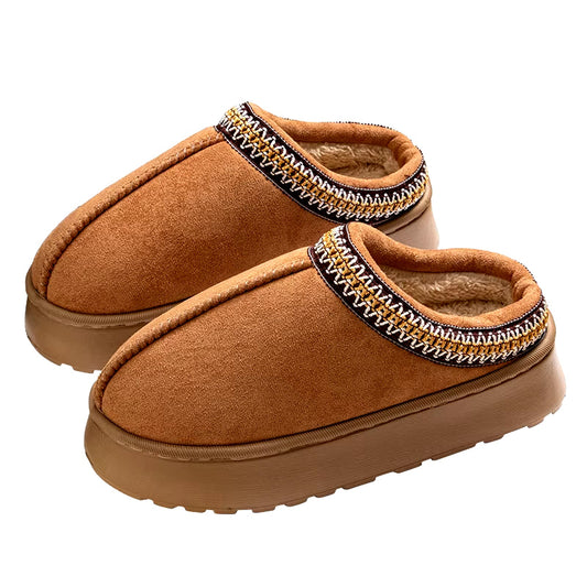Woman Winter Slippers: Plush Interior, Anti-Slip Sole, Thick Bottom, Embroidered Fashion
